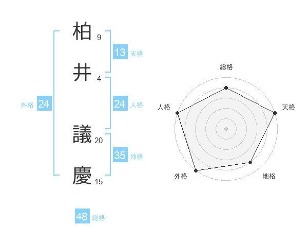 柏井 議慶さんを姓名の画数から五運を鑑定