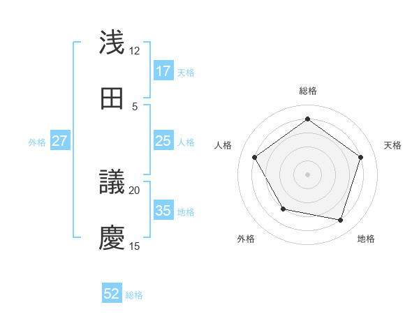 浅田 議慶さんの総格は52画の4点!