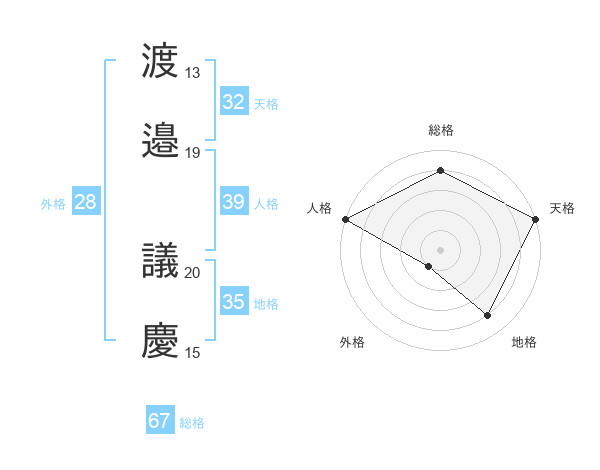 渡邉 議慶さんの総格は67画の4点!