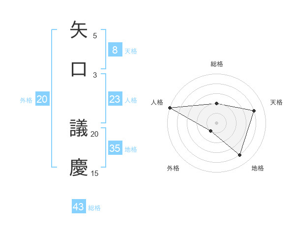 矢口 議慶さんを姓名の画数から五運を鑑定