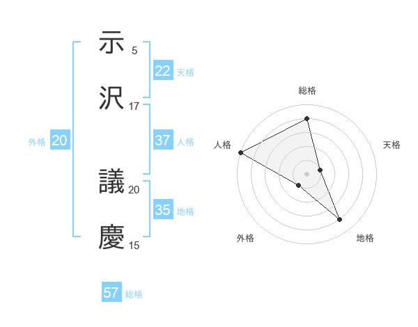 示沢 議慶さんの総格は57画の4点!
