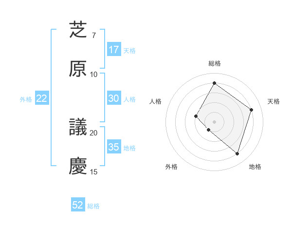 芝原 議慶さんの総格は52画の4点!