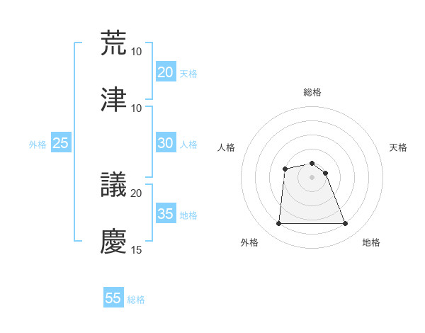 荒津 議慶さんの天格は20画の1点!