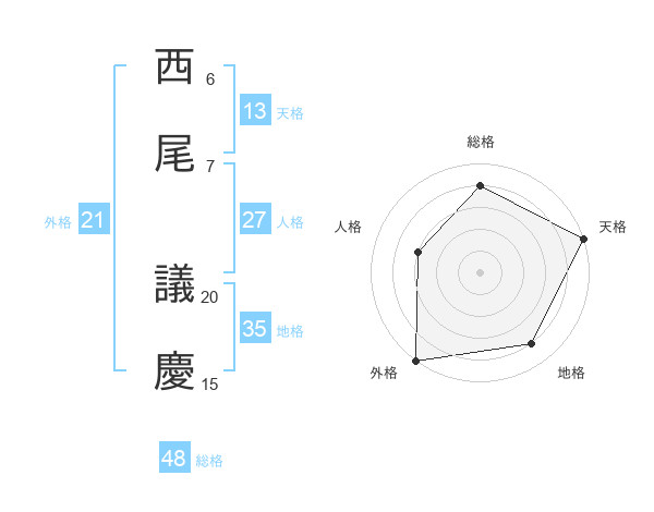西尾 議慶さんの外格は21画の5点!