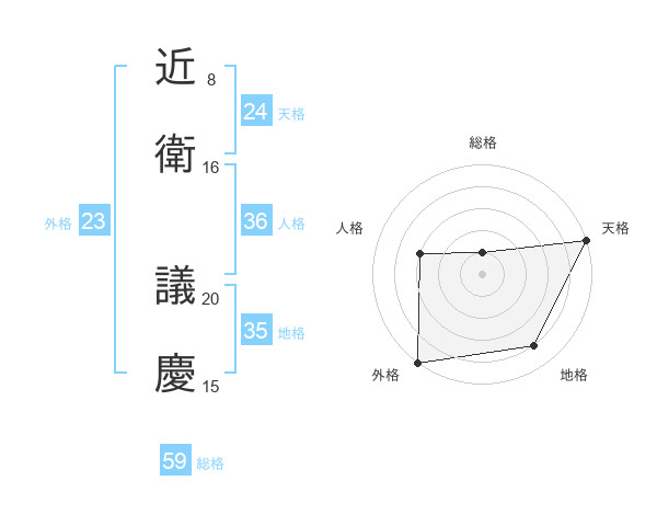 近衛 議慶さんの総格は59画の1点!