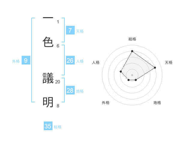 一色 議明さんの総格は35画の4点!