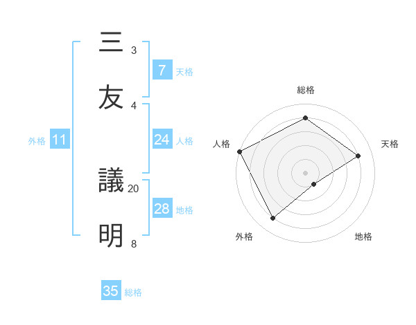 三友 議明さんの外格は11画の4点!