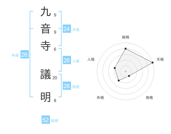 九音寺 議明さんの総格は52画の4点!