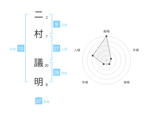 二村 議明さんの総格は37画の5点!