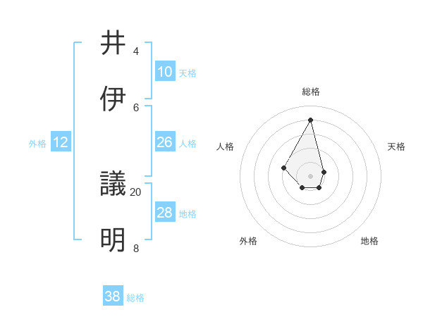 井伊 議明さんの総格は38画の4点!