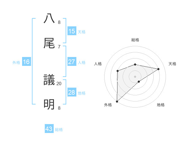 八尾 議明さんの天格は15画の4点!