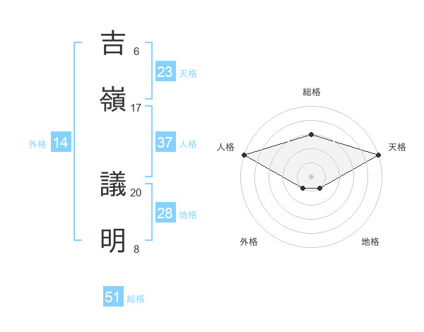 吉嶺 議明さんの総格は51画の3点!