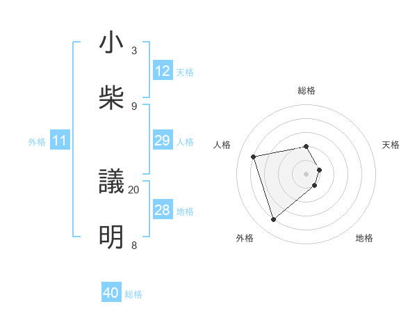 小柴 議明さんの天格は12画の1点!