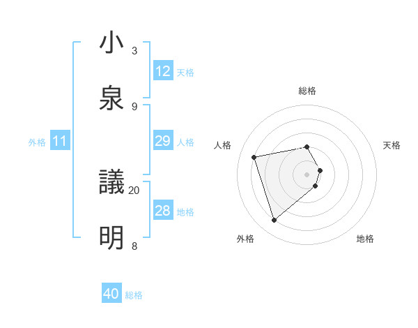 小泉 議明さんの天格は12画の1点!