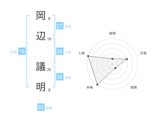 岡辺 議明さんの外格は16画の5点!