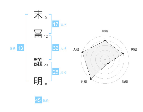 末冨 議明さんの外格は13画の5点!