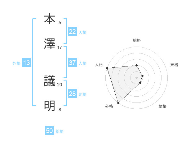 本澤 議明さんの外格は13画の5点!