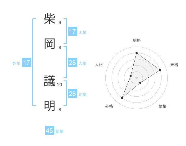 柴岡 議明さんを姓名の画数から五運を鑑定