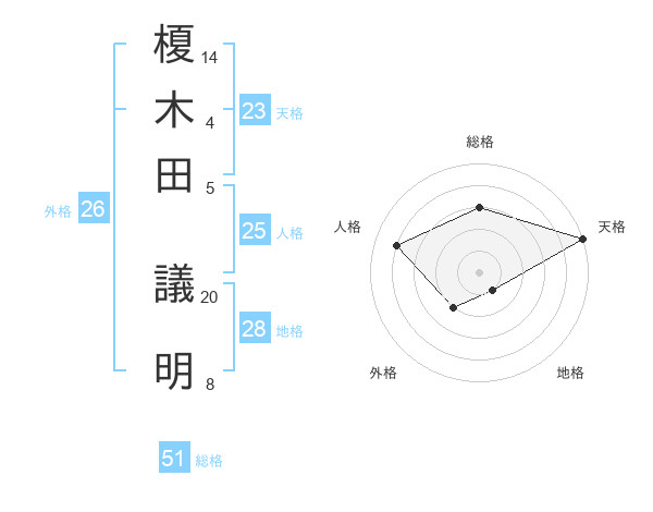 榎木田 議明さんを姓名の画数から五運を鑑定