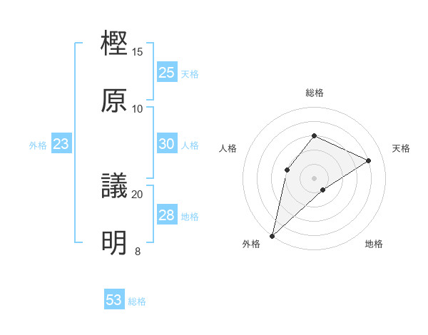 樫原 議明さんの総格は53画の3点!