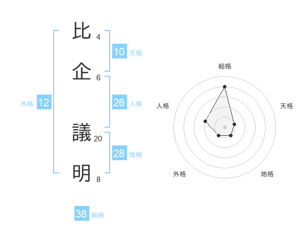 比企 議明さんの総格は38画の4点!