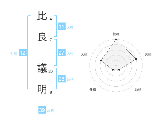 比良 議明さんの総格は39画の5点!