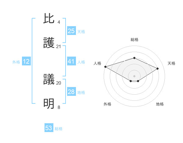 比護 議明さんの天格は25画の4点!