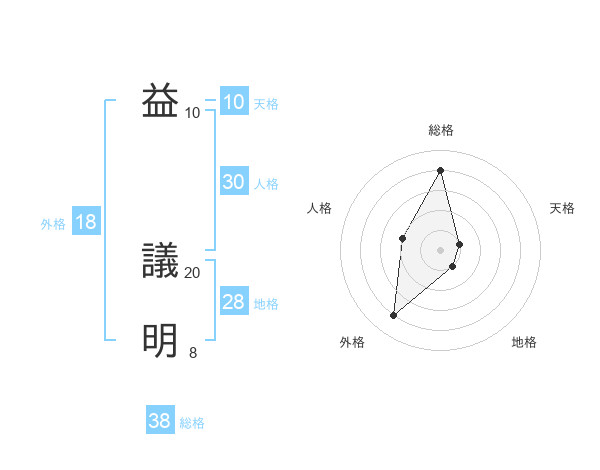 益 議明さんの総格は38画の4点!
