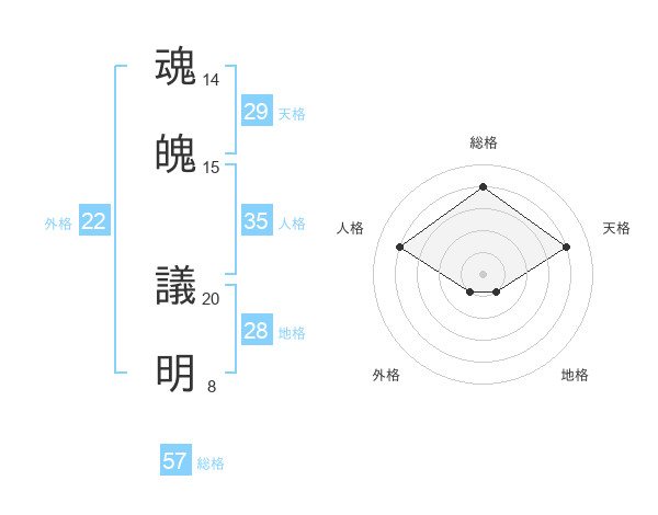 魂魄 議明さんの外格は22画の1点!