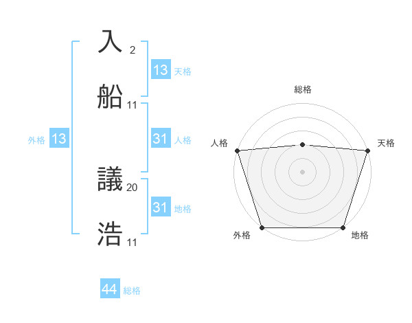 入船 議浩さんの総格は44画の2点!