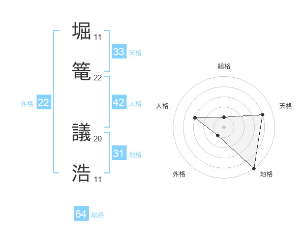 堀篭 議浩さんの総格は64画の1点!