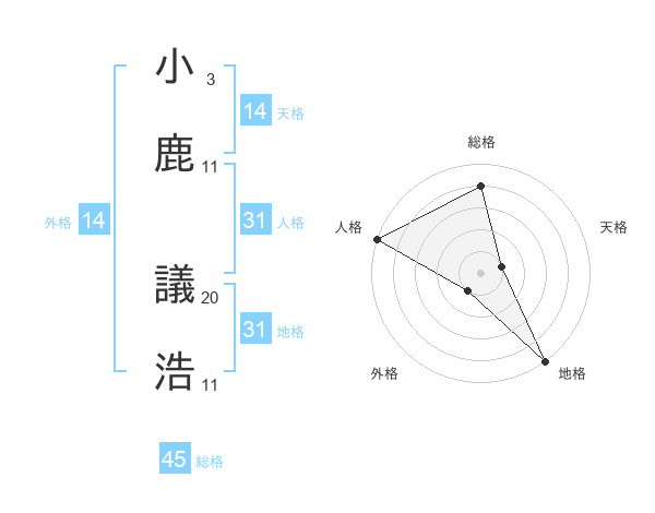 小鹿 議浩さんの総格は45画の4点!