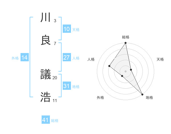 川良 議浩さんの総格は41画の5点!