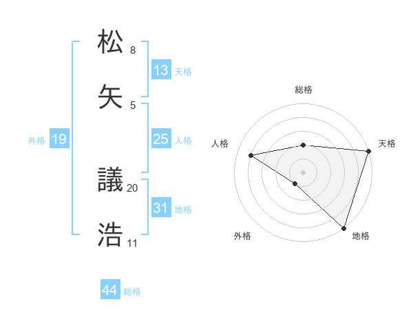 松矢 議浩さんの天格は13画の5点!