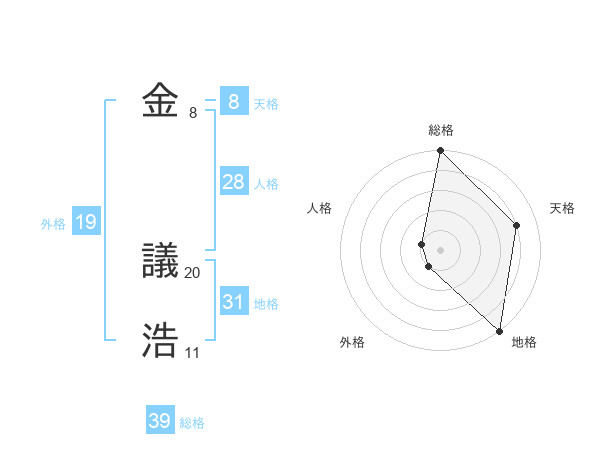 金 議浩さんの天格は8画の4点!
