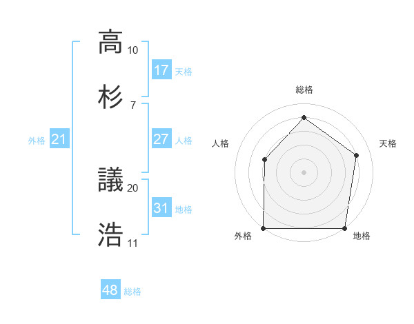 高杉 議浩さんを姓名の画数から五運を鑑定