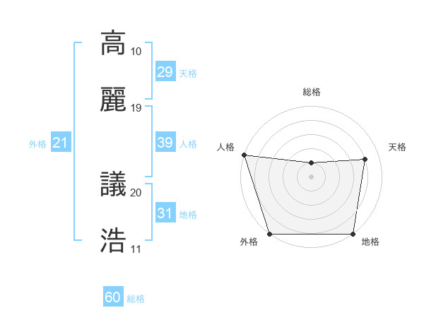高麗 議浩さんの外格は21画の5点!