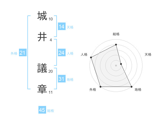 城井 議章さんの外格は21画の5点!