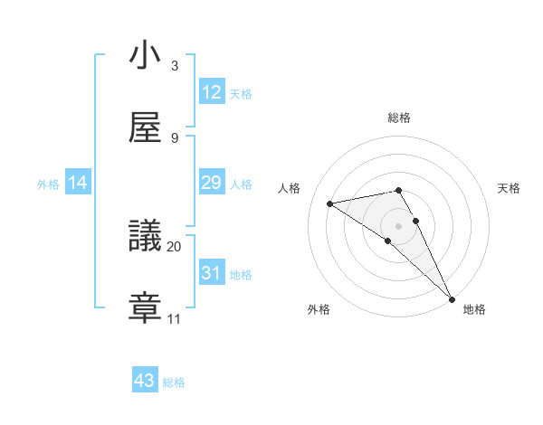 小屋 議章さんの総格は43画の2点!