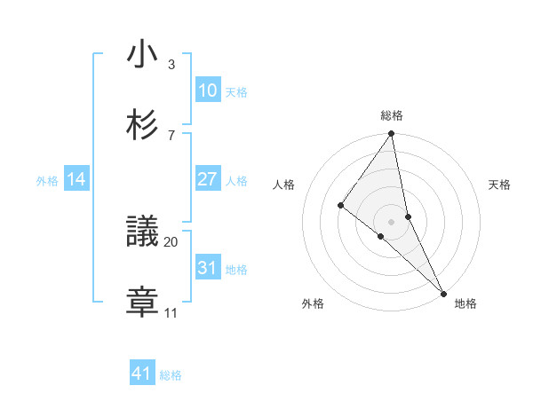 小杉 議章さんの総格は41画の5点!