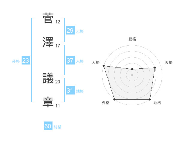 菅澤 議章さんを姓名の画数から五運を鑑定
