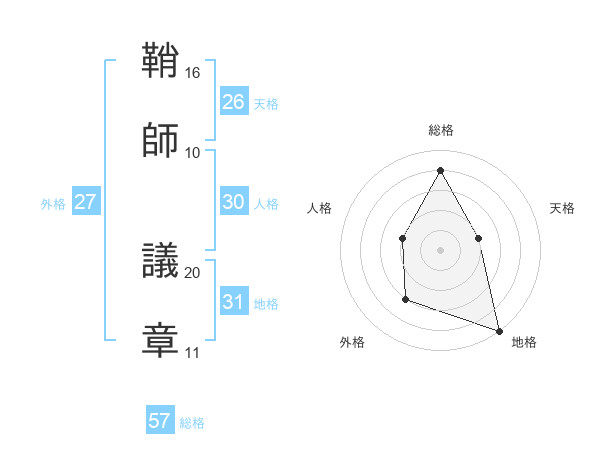 鞘師 議章さんを姓名の画数から五運を鑑定
