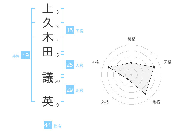 上久木田 議英さんを姓名の画数から五運を鑑定