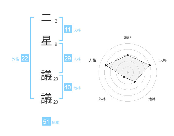 二星 議議さんの総格は51画の3点!