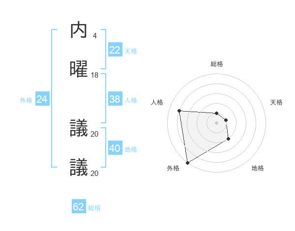 内曜 議議さんの総格は62画の1点!