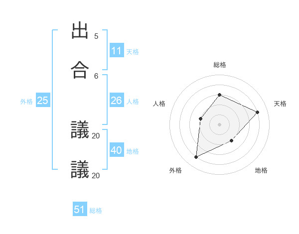 出合 議議さんの総格は51画の3点!