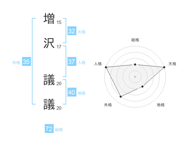 増沢 議議さんの総格は72画の2点!