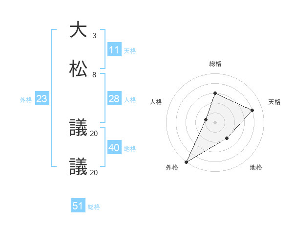 大松 議議さんの総格は51画の3点!