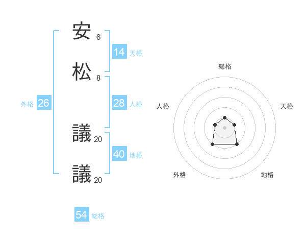 安松 議議さんの総格は54画の1点