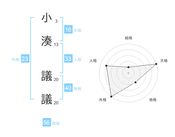 小湊 議議さんの総格は56画の1点!